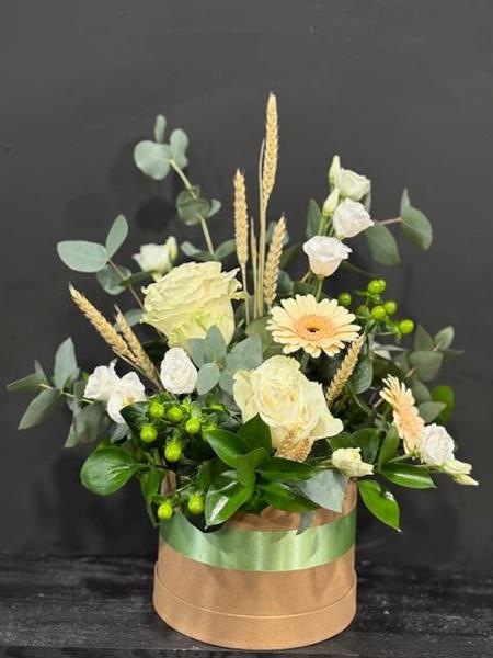 Fresh whites in a hat box style arrangement