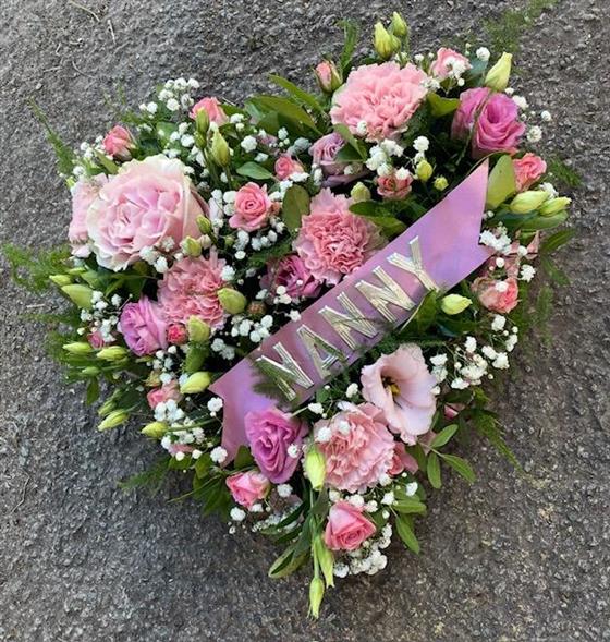Pretty pink loose style heart tribute , please call shop for individual specifications
