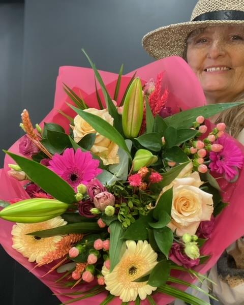 Stunning mix of raspberry and cream coloured flowers with dried flowers just picked for you!