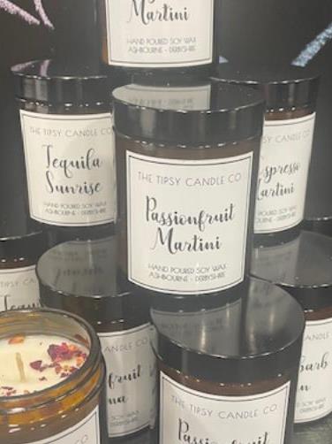 New in delicious scented candles , choose from Tequila sunrise , Passionfruit martini , Espresso martini or Grapefruit paloma and Rhubarb gin.