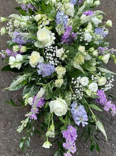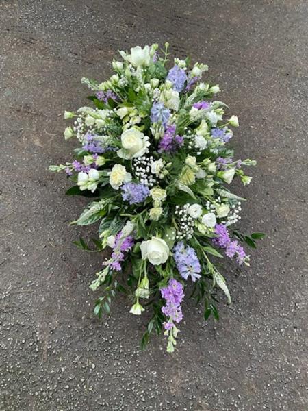 delicate lilacs and white in a double ended style tribute spray