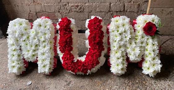 Mum tribute based in white with U in red, please contact shop for other colour combinations